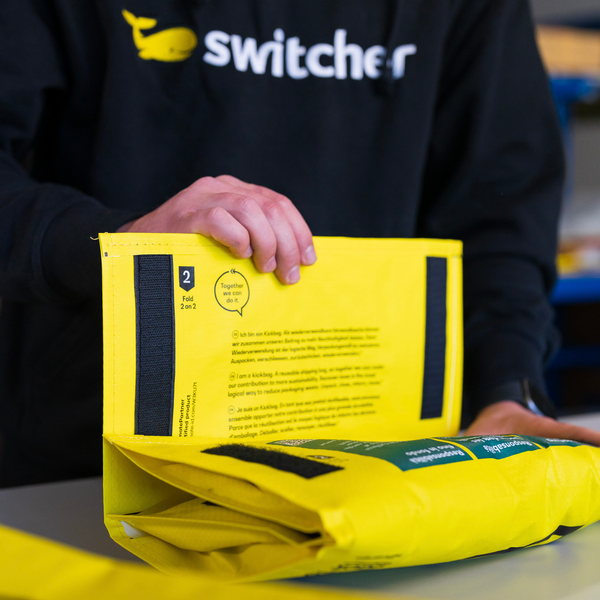 The Switcher KickBag is a reusable shipping bag that is used instead of disposable cardboard boxes or PE bags. Our customers receive a returns label with every delivery so that the KickBag can be easily returned.
