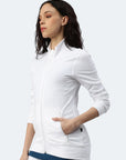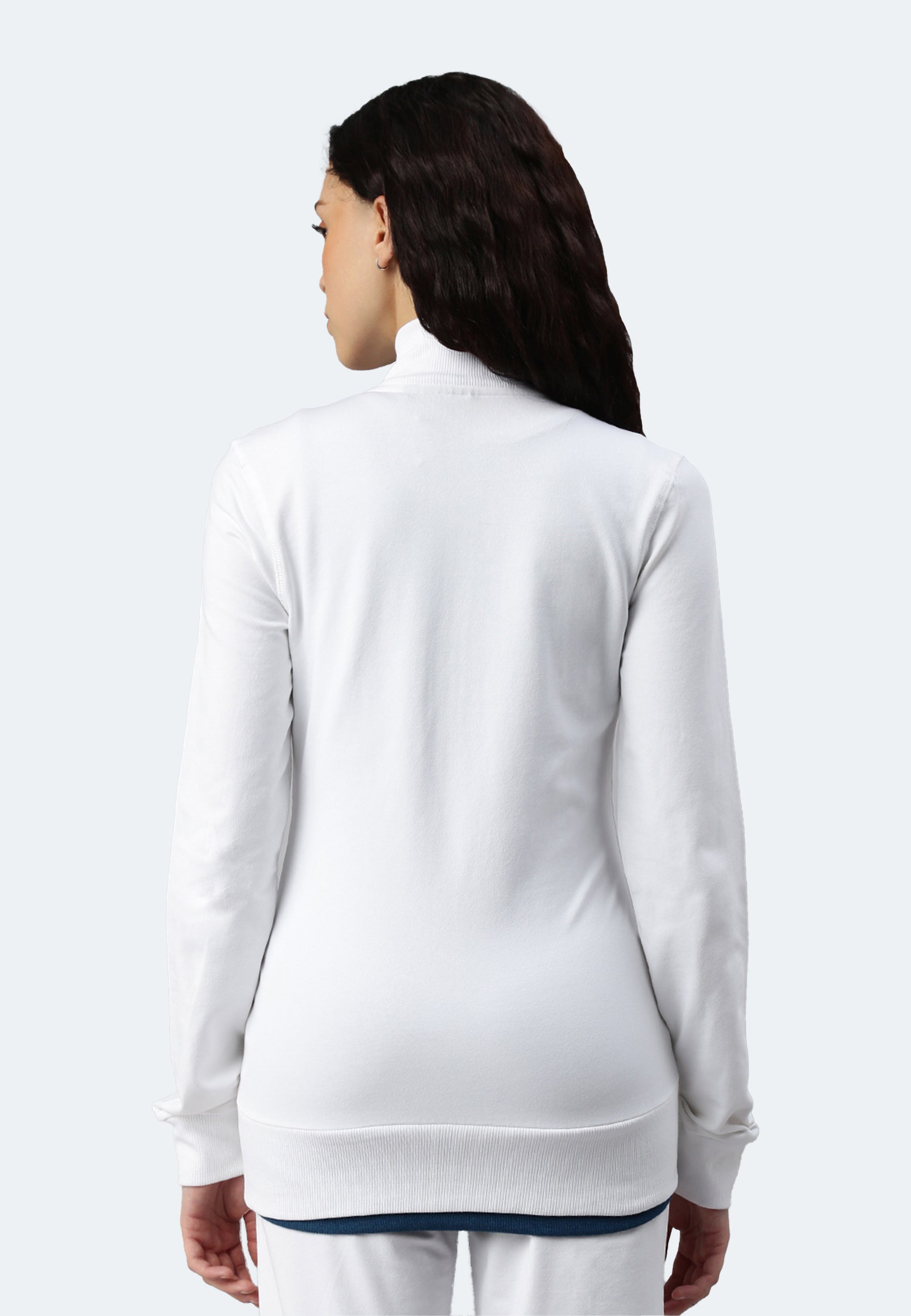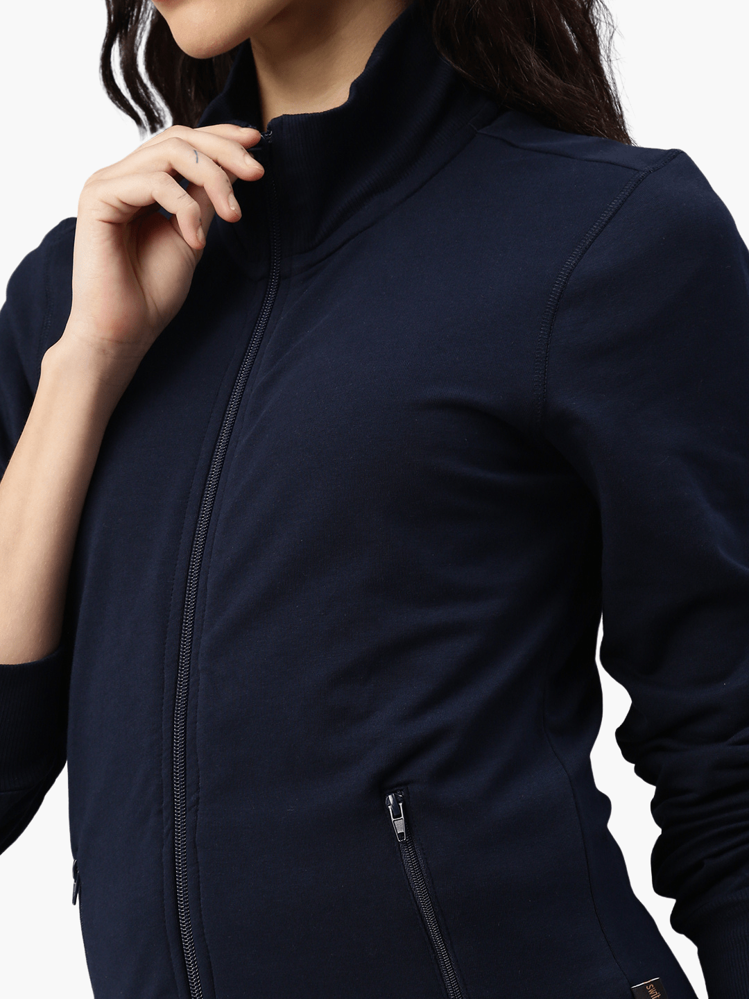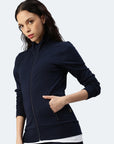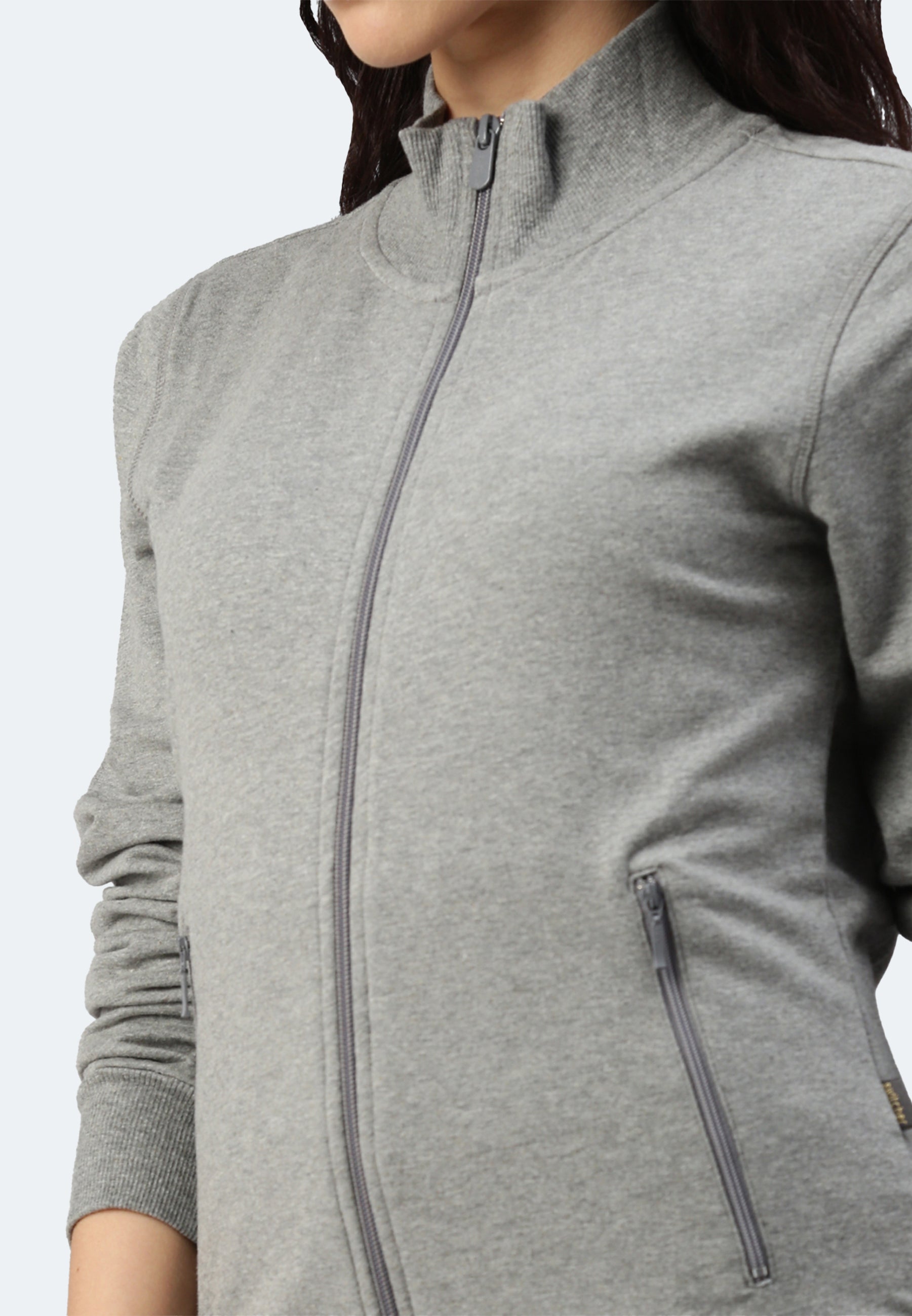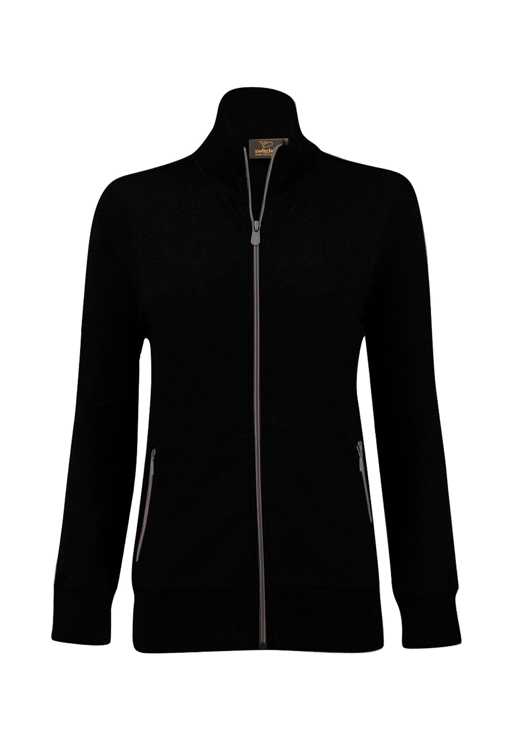 Ladies sweat jacket made of pleasant stretch cotton for greater comfort. Set-in sleeves, side pockets with zipper. Ribbed cuffs and waistband.